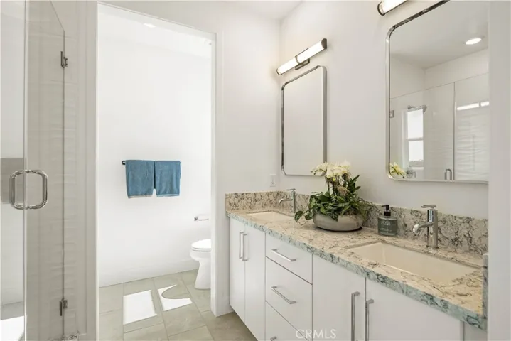 The second-floor great room is bright and welcoming—ideal for gatherings or quiet evenings at home. Upstairs, the private third-floor primary suite offers a relaxing retreat with a walk-in closet and spa-like bathroom featuring a dual-sink vanity, walk-in shower, and enclosed water closet.