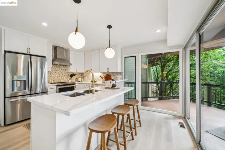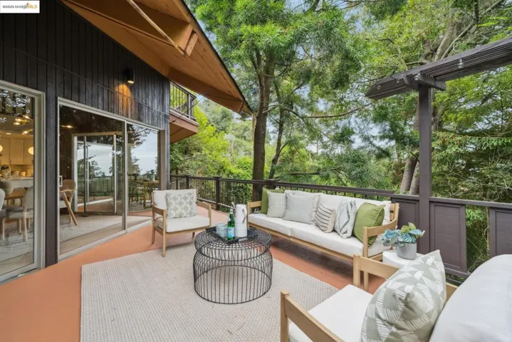 Piedmont Pines Mid Century Retreat. Nestled among the trees, this serene mid-century home offers the feeling of a Tahoe getaway just minutes from Montclair Village. The main house features 4+ bedrooms, 2 bathrooms, two spacious living rooms, and flexible spaces ideal for a media room, office, or gym. An additional 1-bedroom, 1-bath suite with a private entrance is perfect for guests or an au pair. Designed for effortless indoor/outdoor living, the home opens to expansive private decks leading to a tranquil pond and level play area, hot tub and surrounded by gardens with a Japanese-inspired design. Enjoy glimpses of the Bay, a fully remodeled kitchen, and an open floor plan with warm wood finishes, a wet bar, and sliding glass doors framing lush greenery. Conveniently located near Hwy 13 and scenic hiking and biking trails, this one-of-a-kind property offers privacy, beauty, and a true connection to nature—just moments from city life. Close to top rated schools, East Bay Parks and much more!
