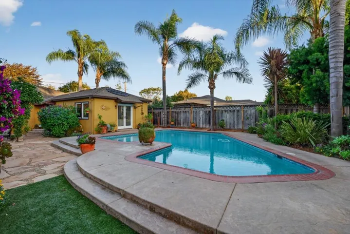 Welcome to 2129 Bello Ave, nestled on a quiet, tree lined street in one of the most desirable pockets of Willow Glen. This beautifully remodeled single story sanctuary features 3 bedrooms, 2 bathrooms, and 1,662 square feet of living space, situated on a large, approximately 8,192 square foot lot. Enjoy the light and bright, open floor plan with an expansive living room that flows seamlessly into the designer gourmet chefs kitchen and inviting dining room. Retreat to the spacious bedrooms, offering both comfort and privacy. Step outside to a resort style backyard with a charming wooden pergola wrapped in vibrant green vines that weave effortlessly overhead, sparkling swimming pool surrounded by picturesque flagstone, and lush turf, all perfect for entertaining and relaxation. Additional highlights include refinished hardwood floors, fresh paint, new baseboards, updated bathrooms, and gorgeous mature landscaping. Conveniently located within walking distance to award winning schools including Booksin Elementary, St. Christopher, Presentation, and WG High. Just a short drive to vibrant Downtown Willow Glen, known for its boutique shops, restaurants, and family-friendly atmosphere. This stunning home perfectly blends comfort and convenience. Do not miss your chance to make it yours!
