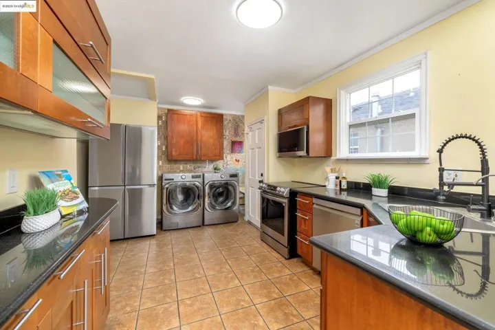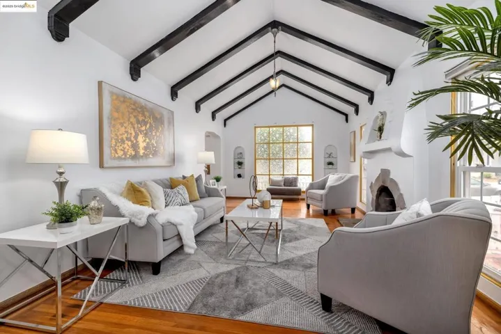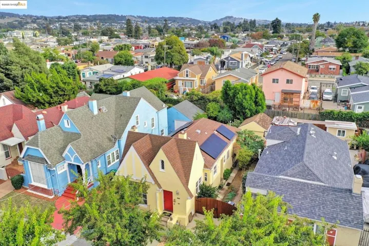 Step into storybook charm in this 1929 Tudor bursting with character and modern upgrades. Behind its cheerful stucco exterior and arched entry lies a warm, light-filled home with refinished hardwood floors, a cozy living room with vaulted beamed ceiling, and a sunny dining area that flows into an updated eat-in kitchen. The kitchen features stainless appliances, and a charming breakfast nook perfect for morning coffee. Two comfortable bedrooms and a refreshed bath create a thoughtful layout all on one level. Energy-saving owned solar panels and forced-air heat add comfort and efficiency. Outside, enjoy a fenced backyard ideal for entertaining, gardening, or relaxing under the California sun. The detached garage and off-street parking provide convenience and extra storage. Located just minutes from BART, shopping, and freeway access, this enchanting Tudor blends vintage character with modern livability in the heart of Oakland.