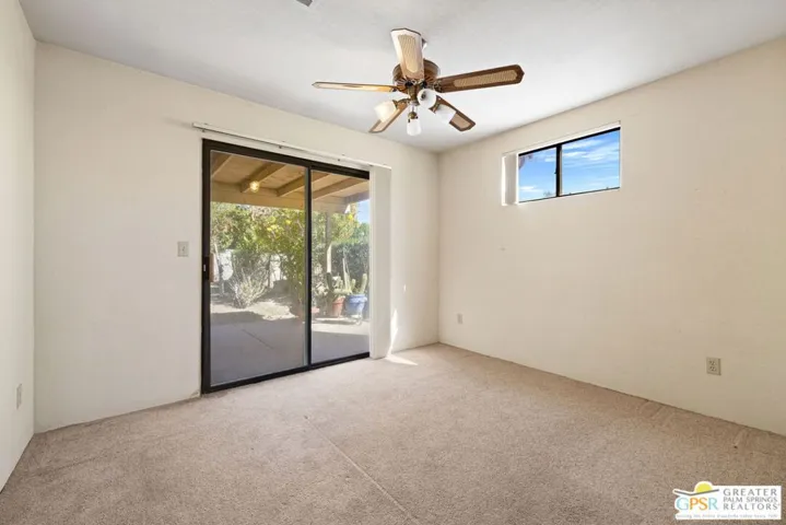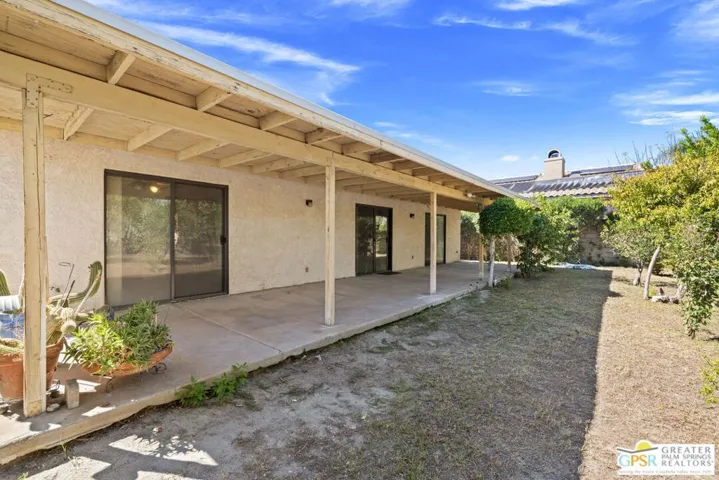 FIXER ALERT in Cathedral City’s Panorama neighborhood. This 3 bed, 2 bath home with attached two car garage and large backyard is READY FOR A MAKEOVER! Open concept layout connects the living, dining, and kitchen areas for easy everyday living and entertaining. A charming pass through window between the kitchen and dining area adds character and convenience. The main living area opens to a spacious covered patio that runs the length of the home, ideal for outdoor enjoyment. Primary Ensuite with access to a patio, a large walk in closet, and a private bath. On the other side of the house are Bedrooms Two and Three. Bedroom Two opens to the patio, and both bedrooms have easy access to a hallway bath. The backyard includes mature shade trees and room to design your own desert retreat or BUILD YOUR OWN POOL AND SPA. Attached two car garage, too! Close to shopping and dining along Date Palm Drive, quick access to I 10, and just a short hop to downtown Palm Springs. A great opportunity to add your personal touch and make it shine.