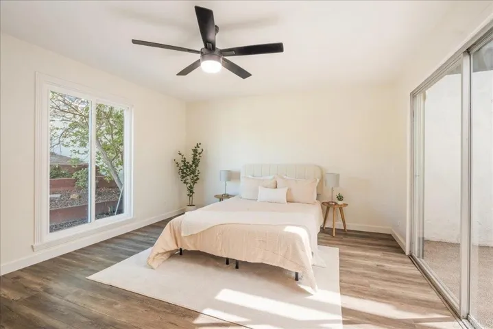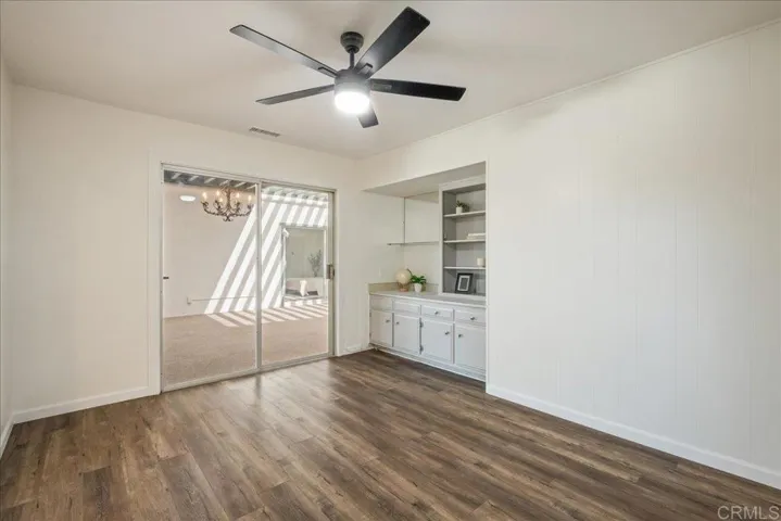 Welcome to this beautifully upgraded single-story residence in the desirable Oceana 55+ community. This charming home features laminate flooring, a modern kitchen with Corian counters, stainless steel appliances and custom backsplash, a spacious living room with large balcony, updated bathrooms, plus a front patio with HOA-approved fencing that creates a private outdoor space. The office can easily be converted into a 3rd bedroom and the enclosed atrium/courtyard offers endless possibilities—perfect for a sunroom or hobby area. Conveniently located near the community entrance and clubhouse, as well as being adjacent to the Emerald Isle Golf Course. Enjoy resort-style amenities including multiple pools, clubhouse, billiards, card and computer rooms, pickleball courts, and more. The HOA covers trash pick-up, and water and sewer are included, adding convenience and peace of mind. Ideally located near the Sprinter station, shops, restaurants, and freeways, this home offers the perfect blend of comfort, convenience, and active coastal living.