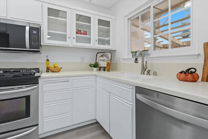Welcome to East Facing Move in Ready, bright 2 story open floor plan home with beautiful views of hills with 2 bed 1.5 bath of modern living with extra Long Driveway & one car Garage, 2 patios and balcony in master bedroom .Kitchen has gas cooktop, new dishwasher & microwave, Corian counter & custom glass cabinets. Living room has wood burning fireplace and new floors, home leads into professionally paved backyard. Spacious Bedroom with 2 closets in both bedrooms and a hallway closet . Home has more upgrades like, New Copper Plumbing, New Tankless water heater, Nest Thermostat, New Electrical fixtures, New Floors, washer dryer inside on ground floor. Updated bathroom with new counter’s and fixtures. Many closets for ample storage. Wood Burning Fireplace for perfect holidays celebrations. HOA covers water, garbage, unit insurance, Earthquake insurance, Roof, Fences, Patio, outside paint and much more, HOA amenities includes tennis court, Swimming Pool, Play area and Club house for large gathering. Close to park, Award Winning Garden Gate Elementary ,Lawson Middle School, Monta Vista High School, Close to De Anza Community College and Freeway access. Very Close to Trails and Memorial Park, farmer Market. Dog park, Close to major employers and Downtown. You will love living here !