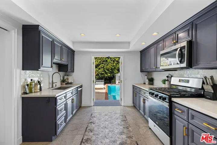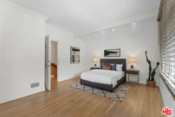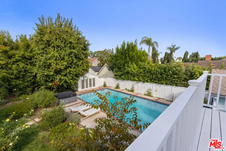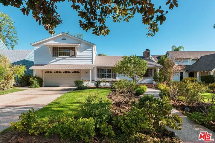 Located in the heart of Sherman Oaks, this inviting traditional residence embodies the best of Southern California living. Set on a beautifully landscaped, flat lot of over 9,000 square feet south of Ventura Boulevard, the home blends classic character with modern comfort in an entertainer’s ideal setting. Step inside to a warm and elegant living room featuring wood-beamed ceilings, rich hardwood floors, and an oversized fireplace anchoring the space. The open layout flows seamlessly into a formal dining room and a bright, cheerful den with direct access to the resort-style backyard. The remodeled kitchen offers custom cabinetry, stainless steel appliances, and convenient access to outdoor entertaining areas. Upstairs, two spacious bedrooms include a primary with a private balcony overlooking the lush grounds and pool. Both rooms are filled with natural light and feature generous closet space. A large bathroom includes both a soaking tub and separate shower, with potential for reconfiguration to suit your style. A third bedroom on the main level, complete with its own full bathroom, provides flexibility for guests, a home office, or a fitness room. The expansive backyard is a private oasis, surrounded by mature landscaping, vibrant rose bushes, and towering hedges. A pool, pool house/cabana, and multiple seating areas create an ideal environment for relaxing or entertaining year-round. Additional highlights include a two-car attached garage with direct entry, HVAC, copper plumbing, an energy-efficient “cool” roof, and upgraded pool equipment. Located within the desirable Lanai Road Elementary and Hesby Oaks Charter school districts and just moments from Ventura Boulevard’s boutiques and restaurants, this home perfectly captures the essence of relaxed, refined Sherman Oaks living just minutes from the city.
