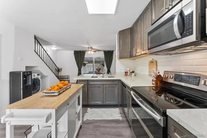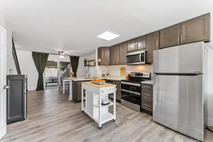Beautifully upgraded 2-bedroom, 1.5-bath, 2-story condo with no upstairs or downstairs neighbors! Conveniently located near the 94 and 125 freeways, this home offers an open floor plan with modern finishes throughout. Enjoy stainless steel appliances, in-unit laundry, and fresh paint throughout the entire space. Recent upgrades include a new water heater (2 years old), new double-pane windows, laminate flooring, and recessed LED lighting. Step outside to a private, fully fenced patio—freshly painted and complete with a brand-new awning—perfect for relaxing or entertaining. The stairs and landing have been updated with new laminate flooring, and the main bedroom features a custom closet organizer for added functionality. Two assigned parking spaces include one uncovered spot right in front of the unit and one covered space with additional storage. Plenty of guest parking and street parking available. The community offers a large park with walking trails, a basketball court, and a sparkling pool—everything you need to enjoy comfortable and convenient living!