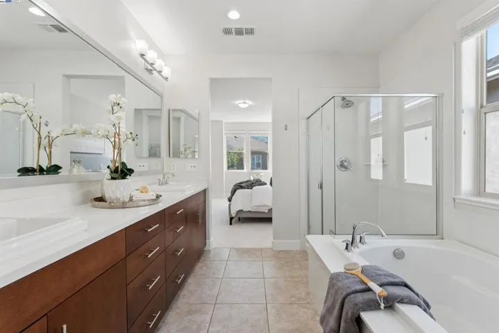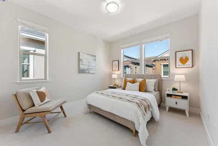 Rare opportunity – Township Square development with an elevator! Resort style amenities-clubhouse with pool, spa, fitness center, playground, BBQ, bocce ball court and more! Modeled after the Brownstones in New York, this “like-new” home is a three-story, 4 bedroom, 3 1/2 bath 2856 square foot masterpiece that is easily accessible with a private elevator, ideal for multi-generational living. The home features new carpet, hardwood floors, and 49 windows spanning over three floors making it light and bright. Incredible living options with a large bedroom/office and full bath on the first floor with access to a side yard and easy access to an oversized 2-car garage which is pre-wired for electric car charger and provides maximum second floor hosts a chef’s kitchen complete with extra storage, white quartz countertops, Bosch SS appliances, gas cooktop, oversized island, spacious deck perfect for alfresco dinning. Third floor features the primary suite with a large walk-in closet, updated bathroom, 2 large secondary bedrooms, updated hall bathroom, and an oversized laundry room. Close to top-rated schools, Bernal sports park, fairgrounds, dining/shopping, and downtown. Enjoy views of the Pleasanton ridge & designated open space. Convenient access to I-680, I-580, ACE, and BART. Views: Ridge