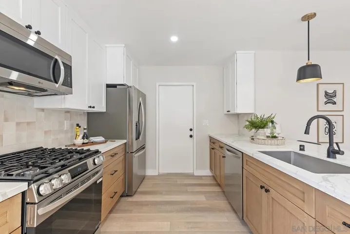 Beautifully updated 3-bedroom, 2-bath ranch-style home with an optional 4th bedroom located on a quiet, family-friendly corner lot in Clairemont. This 1,692 sq. ft. home features an open layout with a brand-new kitchen, stainless steel appliances, luxury vinyl plank flooring, and renovated bathrooms. Dual-pane windows and updated lighting bring in plenty of natural light throughout. Recent upgrades include new interior and exterior paint, new flooring, remodeled kitchen and baths, updated lighting, and a new A/C condenser. The home also offers a two-car attached garage, a new electrical panel, and a covered patio overlooking the backyard. Conveniently located near parks, shops, highways, and schools — move-in ready and ideally located.