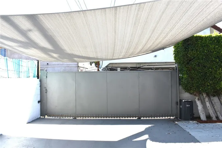Outdoors, you’ll find new awnings over the porches, new gutters, and a private washer/dryer area just off the kitchen. A shared automatic gate provides access to side-by-side parking with a shade sail, surrounded by neatly-trimmed ficus trees offering privacy and greenery.