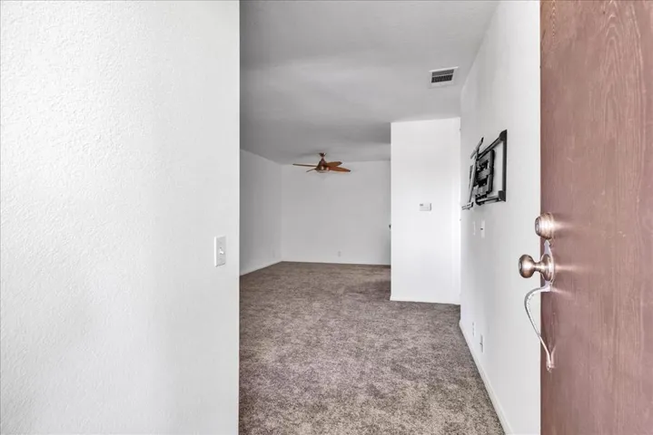 Welcome to this beautifully refreshed condo in Palm Springs Villas II, a gated community offering resort-style living on fee simple land. This stylish 1-bedroom, 1-bath home–just steps from the pool–features new carpet, fresh interior paint, mirrored closet doors, new vertical blinds, and an inviting open layout that flows to a private balcony surrounded by lush greenery and peaceful east-facing views of the pool and spa. The galley kitchen offers clean white cabinetry and modern finishes. The bedroom includes plantation shutters, mirrored wardrobes, and plenty of natural light, while the bathroom features a shower over tub. Palm Springs Villas II offers multiple pools and spas, tennis courts, and beautifully landscaped grounds within a lush, park-like atmosphere, plus ample unassigned parking and covered carports–all just minutes from downtown Palm Springs, dining, and shopping.