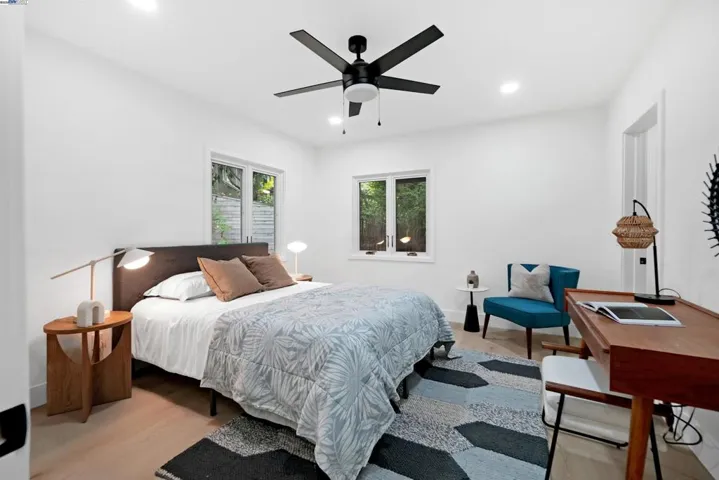 North-facing and newly upgraded, 2420 Hillside Ave is one of Berkeley’s rare finds—where charm, flexibility, and location collide. With over $90,000 in renovations and brand-new roofs on both the main home and detached 2-car garage, this 2-bed, 2-bath, 1,854 sq ft residence on a 5,573 sq ft lot blends modern comfort with timeless appeal. The property is currently used as a single-family home but is classified as a duplex on tax records, allowing it to be reconverted for multi-unit living. The detached garage with workshop below offers ideal ADU potential, creating a path for up to 3 units. Inside, you’ll find premium waterproof flooring, recessed lighting, new paint, baseboards, and fixtures throughout. The main level features a bright open floor plan, a remodeled kitchen with quartzite waterfall counters, and a dining deck overlooking the creek. The upstairs bath includes new plumbing, electrical, and a seamless walk-in shower. Downstairs offers the primary bedroom, full bath, office, bonus room with Tonal gym, and a separate laundry room with sink and storage. Minutes from UC Berkeley, Greek Row, Gourmet Ghetto, and downtown, this turnkey property delivers lifestyle, investment, and location in one exceptional package.