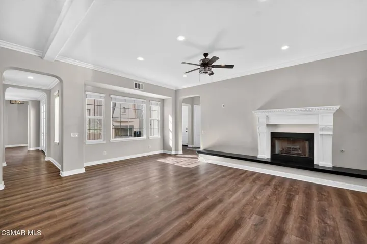 Welcome to this gorgeous home in highly sought after Big Sky Community. This home has a spacious and well-appointed floor plan. The Foyer lends to a seamless flow into the updated family room with a fireplace. There is an open kitchen with granite counter tops, a large center island, with sink and dishwasher. Kitchen is ideally located adjacent to the family room. Also, a Butler’s pantry connecting to the formal dining area. Plenty of large windows allowing natural light and a view of the backyard. The home features a private courtyard with a fireplace. The main floor has one bedroom with a walk-in closet and ensuite bathroom. Second level is beautifully designed with a large primary bedroom with a fireplace, walk-in closet. Luxurious primary bathroom, featuring his & her vanity, stand-alone tub, spacious shower and sit in coiffeuse area. Large upstairs laundry room. Two of the bedrooms are Jack and Jill style, sharing one bathroom. The remaining bedroom also has an ensuite bathroom. Home has a beautiful entertainer’s backyard! Nicely designed spa and pool, with water features and safety fencing which can be removed. Also Built in BBQ bar, features a pizza oven, kegerator, refrigerator, outdoor sink, with space for lots of seating. There is a dog run, and several fruit producing trees. Professionally landscaped with a firepit and an additional large patio deck area. Home also features solar with two Tesla power walls and a tankless water heater. Big Sky community offers a wealth of outdoor amenities, including walking and hiking trails, a dog park and breath-taking mountain views. Conveniently located near shopping, dining, and the 118 freeway. Don’t miss this rare opportunity to own in one of Simi Valley’s most desirable neighborhoods.