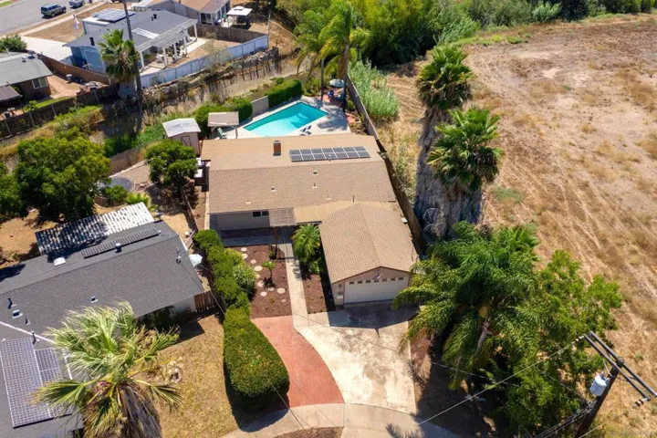 This cozy, single-story Poway home is just waiting for you to pull in the driveway and take a peek. Nestled at the end of a cul-de-sac-like street, with only one neighbor to the east ensures a sense of privacy. You’ll immediately notice the breezes through the palms and the beaconing of the colorful lantana dotting the path to the front door. “Home” whispers softly in your thoughts. (Supplement) This 3-bedroom/2-bathroom, home offers an open airy floorplan will entice even the most discerning Buyer. Solar system (to be paid in full through escrow); new interior paint[*]; New carpeting in bedrooms and closets[*]; Dual pane windows [*]; Interior laundry room [*]; Fantastic over-size sparkling pool [*]; large covered patio [*]; 8X8′ outdoor shed [*]; unique built-in barbecue [*]; Low maintenance landscaping [*]; Newly sanitized attic space with spray-foam insulation [*]; Located in the top rated Poway Unified School District and a quick drive to shopping, eateries, community services, and the trails and parks that make Poway a place to call “home”. Call for an appointment today.