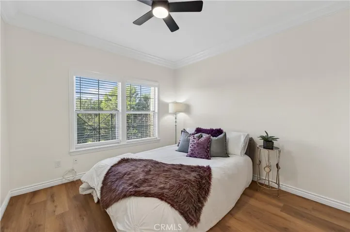 Located in the exclusive gated community of Summit Renaissance, this beautifully remodeled home offers an exceptional blend of comfort, style and modern convenience. Featuring brand new luxury plank flooring, fresh interior paint with designer colors, custom blinds, new electrical work, mostly new plumbing. All mechanical systems have been serviced and up to date. A spacious living area boasts soaring ceilings, a cozy fireplace, walk out balcony and plenty of natural light. The kitchen features granite countertops that include a breakfast bar, stainless steel appliances and beautifully finished cabinetry with plenty of storage. The spacious primary suite includes city lights views, an ensuite bathroom, double vanity sinks with granite countertops, and a generous walk in closet. Large plank flooring extends to all living areas and bedrooms which each feature custom built in closet organizers for convenient storage. Additional highlights include over-sized crown molding, new baseboards, interior full size laundry area, and a private two car garage with wall to wall custom cabinetry. Located within a desirable gated community with additional luxuries that include a beautiful pool and spa for relaxing or entertaining guests. Close to freeways, shopping, restaurants, parks, schools, hiking and biking trails and in one of Orange County’s premiere communities!