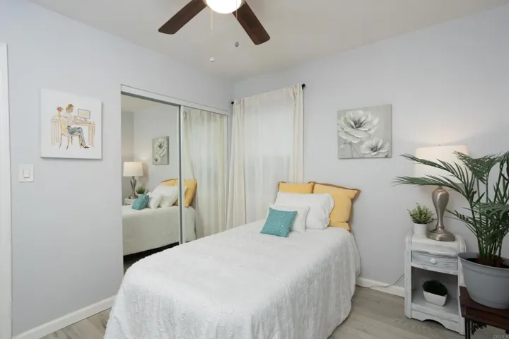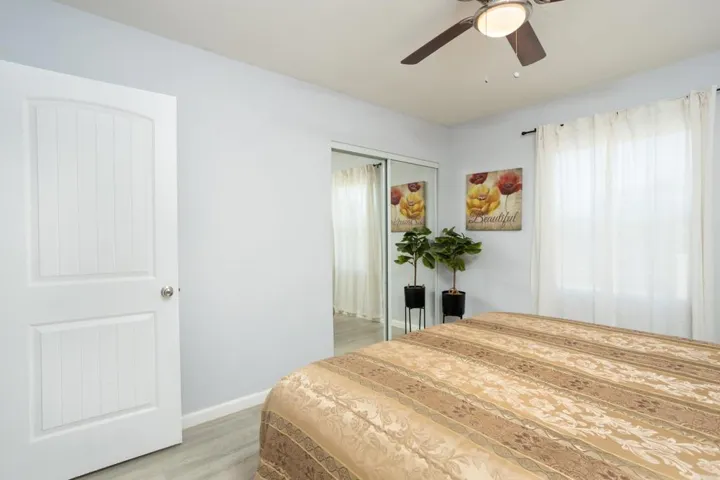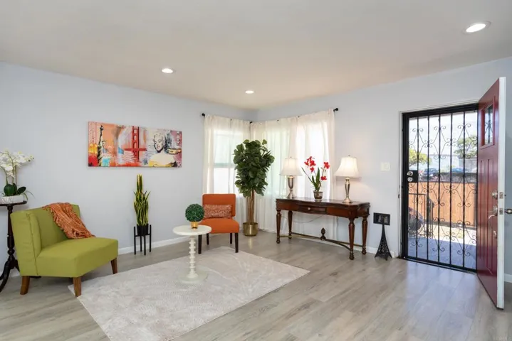 Welcome to this charming 2-bedroom, 1-bathroom single-family home, offering 812 sq ft with an open concept layout. Remodeled in 2019 by the previous owner, this home has been lovingly cared for and is move-in ready. It features modern upgrades, including vinyl plank flooring, quartz countertops, updated kitchen cabinetry and a practical kitchen island. The open floor plan maximizes natural light, creating a bright and inviting atmosphere. Ceiling fans in the bedrooms provide added comfort. Outside, the flat lot includes a spacious backyard with potential for future expansion, including the possibility of adding an accessory dwelling unit (ADU), subject to city approval. Located within walking distance to church, schools and public transportation. Close to shopping and freeways. Zoned R-2, this home is a great starter home with room to personalize and grow. Don’t miss the opportunity to make it yours!