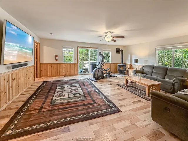 Enjoy stargazing and entertaining on the expansive 840 sq. foot Douglas Fir deck, complete with a gigantic outdoor TV, cozy furniture, and Trex decks on the backside of house with a 5-person hot tub. Inside, you’ll find a warm and inviting open-concept main floor with hickory hardwood floors and tongue-and-groove pine ceilings in entry, living room, dining room and kitchen. Kitchen has 6-burner stove and wine fridge installed in the island. Additional wine storage in downstairs closet.