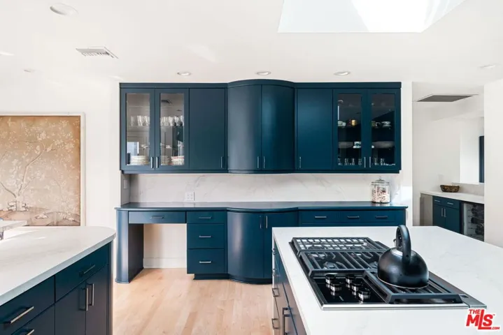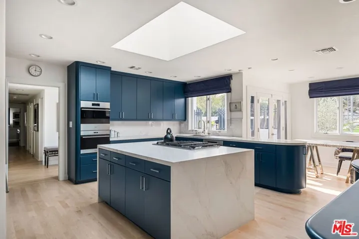 This recently remodeled 4-bedroom home is sited on a quiet cul-de-sac in the hills of Tarzana. Offering a host of modern luxury updates and an open floor plan, the home is bathed in natural light from multiple skylights, walls of windows and French doors. No detail has been overlooked in the renovation, which includes a brand-new HVAC system, water heater, and updated roof. The kitchen has been completely transformed and features a large central island, custom wood cabinetry, and top-of-the-line appliances, including a Sub-Zero refrigerator, double Miele oven and Bosch dishwasher. Updated flooring and all-new solid wood interior doors add to the home’s fresh, modern appeal. The spacious primary suite boasts two walk-in closets designed by California Closets, while the oversized primary bath incorporates a soaking tub, separate shower, enormous vanity, and sliding doors to the backyard. Throughout the home, new lighting, interior and exterior hardware, and select window replacements enhance both functionality and aesthetic appeal. Outside, the newly landscaped front and back yards set the home apart. Perched above neighboring properties, this home offers lovely views of the hills and Braemar County Club. Located near hiking trails, top-tier shopping, and dining including Whole Foods and Gelson’s.