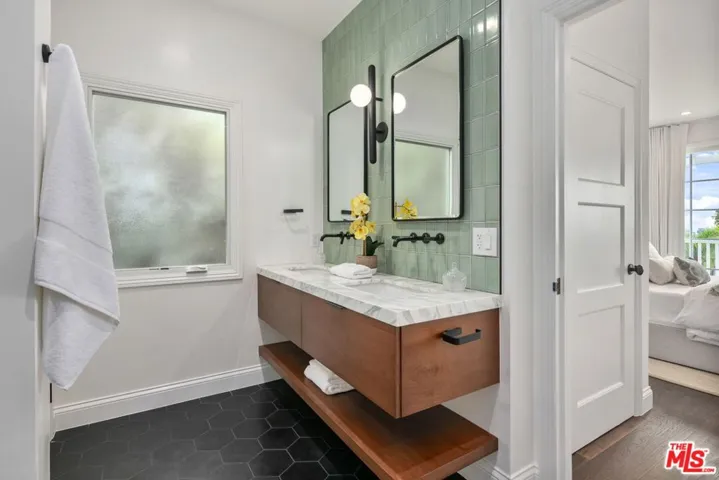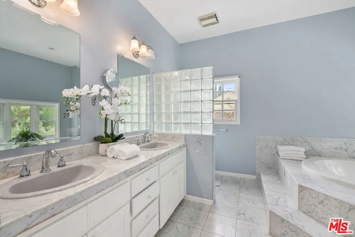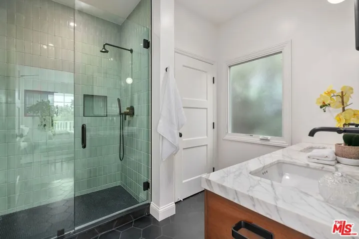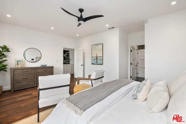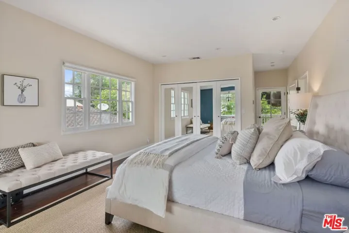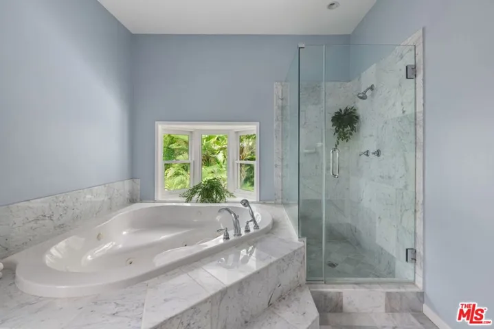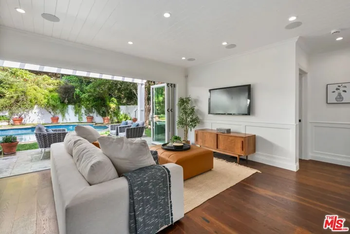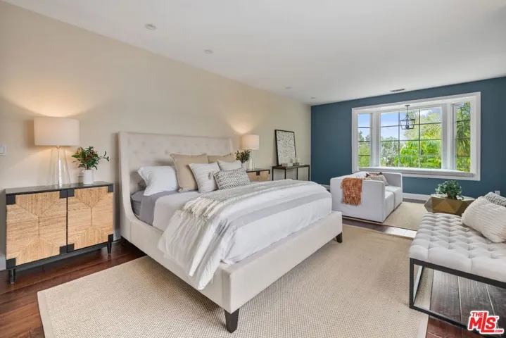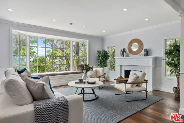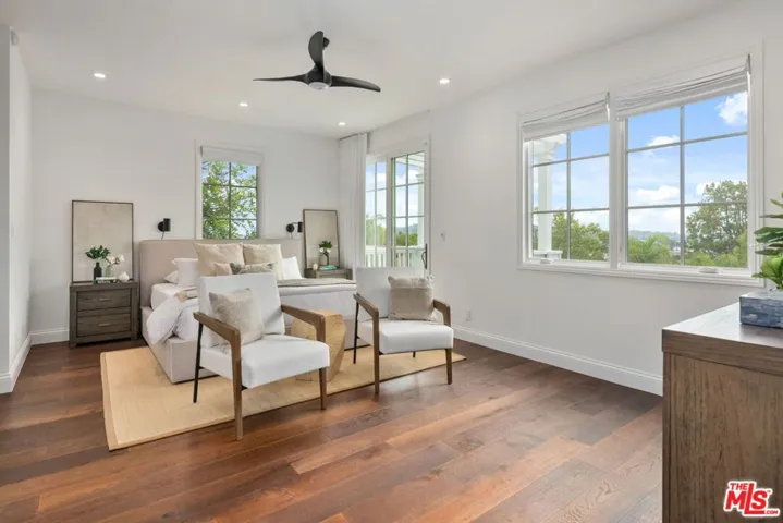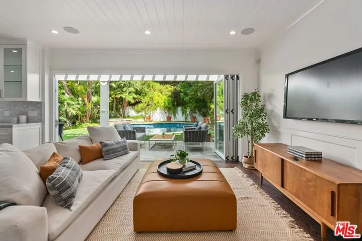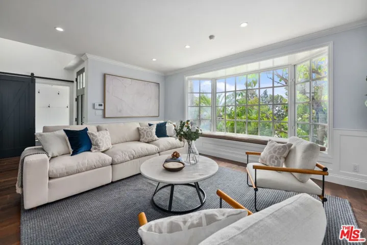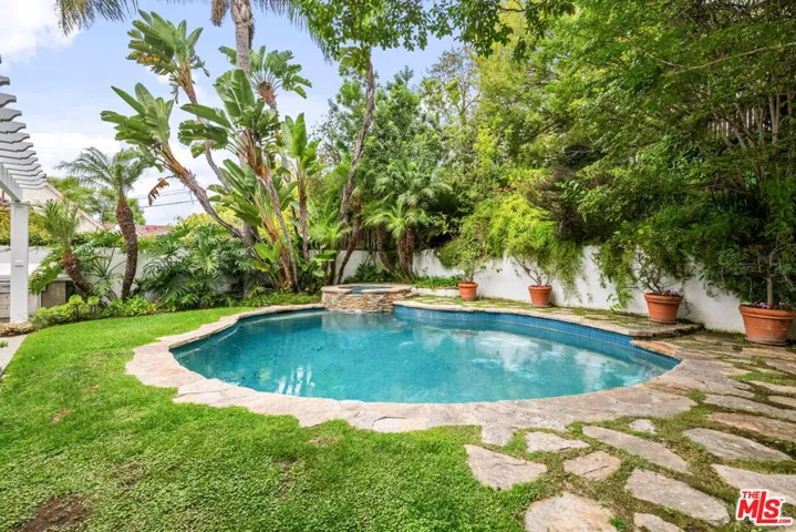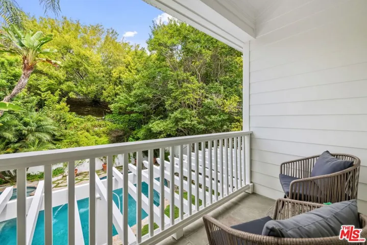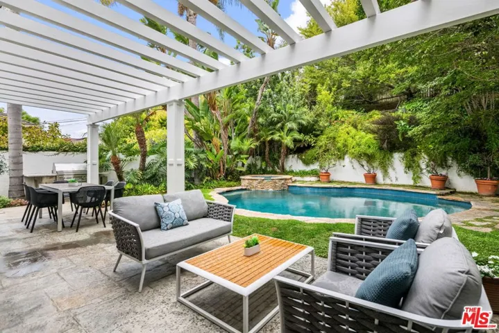 Gorgeous Custom 5 bed/4.5 bath Cape Cod Style Traditional 2-story in Beverlywood with spectacular views and delightful, oversized entertainer’s backyard with pool and spa. Set privately off the street with treetop and city views, this lovely home is filled with natural light, high-end finishes, abundant storage and custom architectural details throughout. The home is designed for luxury family living and upscale entertaining. The entry features a two-story open ceiling and a charming, well-appointed mud room with barn door closure. The home’s ideal, open floor plan includes a spacious living room with wainscoting, fireplace, large bay window with ample cushioned seating with city views, and an elegant powder room tucked away nearby. Formal dining room with exquisite coffered ceiling opens to sun-filled gourmet Kosher kitchen with large center island that offers generous breakfast seating for the whole family, stainless steel appliances including 8-burner Wolf range with built-in griddle and grill, over-range pot-filler faucet, high-capacity externally-vented Wolf hood, double ovens, a wine fridge, built-in under counter microwave, 2 sinks, marble countertops, pantry cabinets with pull out drawers and unique serving window over sink that opens the kitchen to an outside counter/bar adjacent to the outdoor BBQ. Kitchen opens to family room with 4-panel bi-fold doors that create an open, indoor/outdoor living space perfect for hosting intimate and larger-scale gatherings, with built-in barbecue and pergola-covered patio, and a backyard oasis with privately landscaped mature trees framing the pool/spa. Downstairs includes 2 bedrooms, one with en-suite beautifully updated 3/4 bathroom and large patio with tree-top views, and the 5th bedroom with backyard access and 3/4 bathroom just outside the bedroom, ideal as well for a home office. Upstairs 3 additional bedrooms, including oversized primary suite with fireplace, bay window with built-in cushions seating and city views, 2 closets including large custom closet, covered balcony overlooking backyard and luxurious remodeled marble-finished primary bathroom with spa tub, separate shower and dual basins. 2 additional spacious bedrooms upstairs open to shared bathroom with dual basins, including one generously-sized bedroom with a front-facing balcony that boasts breathtaking expansive city views spanning from Downtown Los Angeles to Marina del Rey. Additional features found in luxury estate homes include built-in speaker system in family room ceiling and backyard, security system including custom-designed exterior security cameras with remote access, tastefully remodeled custom bathrooms, high-end fixtures and hardware, hardwood flooring, dual zoned ac/heat, graceful wainscoting, custom door casings, solid wood doors throughout for sound reduction and added privacy, built-ins, skylight, high ceilings and recessed lighting throughout. Ideal proximity to Beverly Hills shopping and retail, Century City’s Westfield Mall and Downtown Culver City retail and restaurants, with easy access to freeways. Castle Heights Elementary School. Stunning home ready to move right in!
