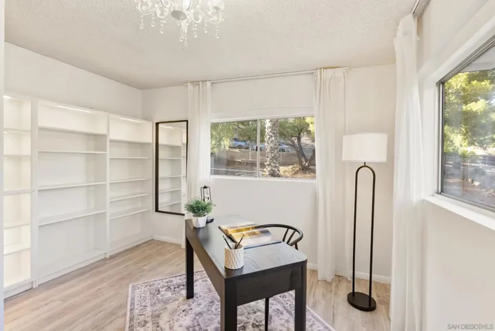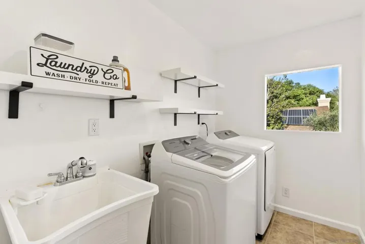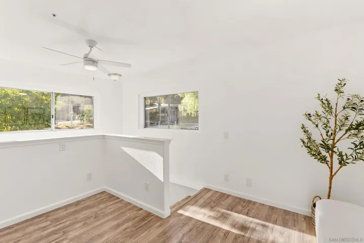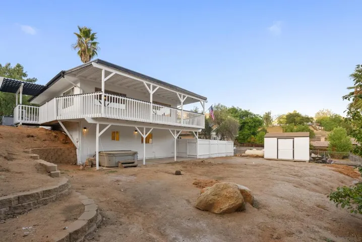 Discover the perfect blend of country tranquility and modern in the picturesque setting of Harbison Canyon. Set on a fully fenced ¼-acre lot with mountain views, this beautifully updated 3-bedroom, 2.5-bath home with 17 panel owned solar offers 1540 square feet of stylish living space and thoughtful upgrades throughout. Step inside to an inviting, freshly painted interior where luxury vinyl plank flooring, upgraded lighting, and a modern palette create a warm, move-in-ready feel. The remodeled kitchen shines (see suppl) with quartz countertops, newer cabinetry, stainless steel appliances, and ample storage. Ideal for everyday living or entertaining. The bathrooms have also been tastefully updated with contemporary finishes. Upstairs, a versatile loft area provides space for a home office, study area, or seating area. The spacious bedrooms include a primary suite with a walk-in closet featuring custom organizers and built-in lighting. Conveniently located on the second floor, the laundry room adds everyday ease. Enjoy the outdoors from the expansive covered deck with peaceful mountain views, perfect for morning coffee or sunset relaxation. The fully fenced yard is a blank canvas ready for your dream backyard design, while the large driveway with an automatic gate offers secure parking for 8–10 vehicles, plus a private one-car garage with direct interior access. Additional highlights include 11 ft X 7 ft Tuff Shed, freshly painted exterior, and plenty of space for RVs, work vehicles, or recreational toys. Whether you’re looking for room to spread out, a home that supports your business needs, or simply a serene retreat that’s still close to city amenities, this Harbison Canyon gem delivers it all.
