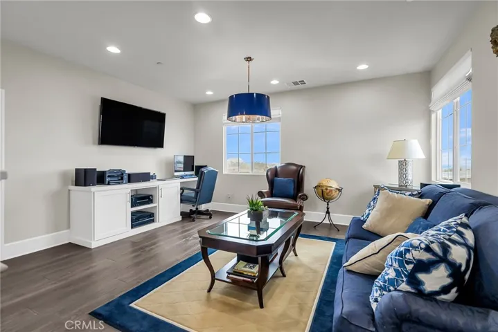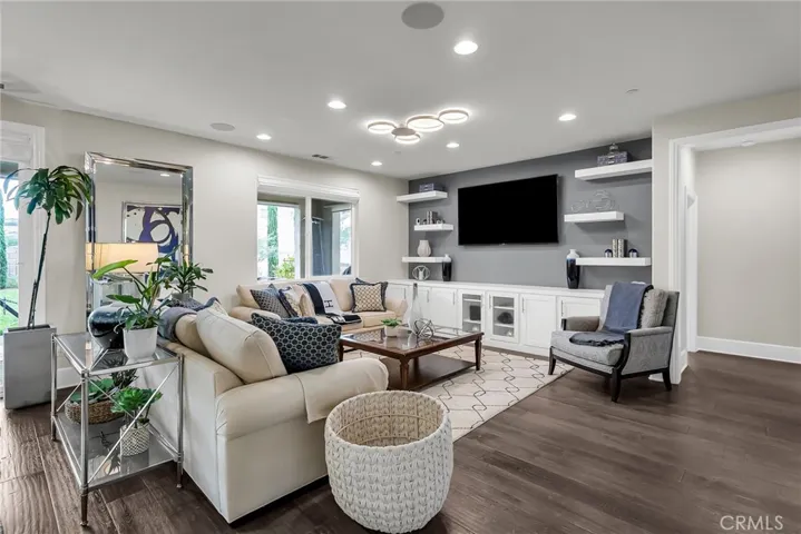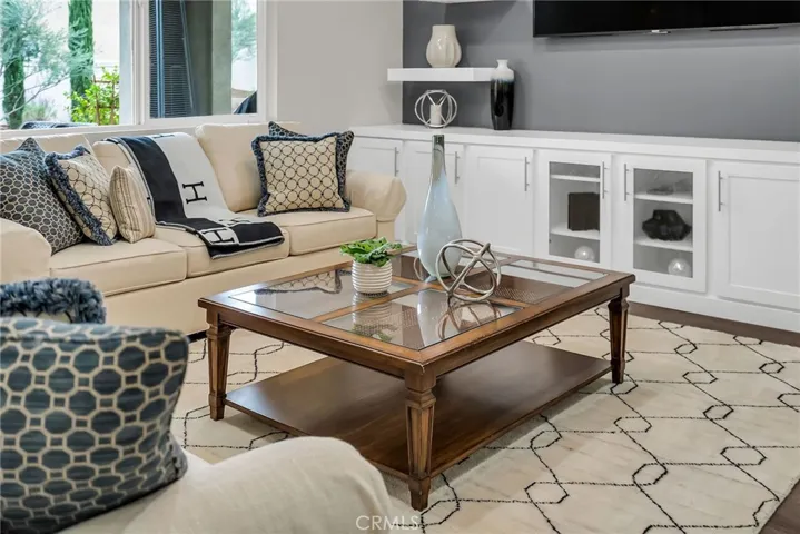 Nestled in the highly sought-after Orangecrest neighborhood, this exceptional residence seamlessly blends timeless elegance with modern sophistication. Every detail has been meticulously curated to create a serene sanctuary of style and comfort. A charming front porch welcomes you with grace, offering the perfect spot to unwind as the sun sets in a cascade of golden hues. Step inside to discover gorgeous hardwood flooring, impressive high ceilings, and exquisite crown molding and baseboards that set the tone for refined living. The heart of the home is an expansive open-concept kitchen and living area, ideal for contemporary lifestyles. The chef’s kitchen boasts striking quartz countertops, premium KitchenAid appliances, abundant upgraded cabinetry, a farmhouse sink, walk-in pantry, and a generous center island illuminated by pendant lighting. The adjoining dining and living spaces are bathed in natural light, creating a relaxed yet sophisticated ambiance. The formal dining room and adjacent butler’s pantry elevate your entertaining experience. A first-floor en-suite bedroom offers versatility for guests or multi-generational living. Upstairs, a cozy loft with a built-in desk provides a peaceful retreat, while three spacious secondary bedrooms—one with its own en-suite bath—ensure comfort and privacy. The palatial primary suite is a true haven, featuring a spa-inspired bathroom with a standalone soaking tub, luxurious shower, dual vanities, marble flooring, and a custom walk-in closet with built-in organizers. The sweeping, pool-sized backyard presents endless possibilities for leisure. An extended California room offers seamless indoor-outdoor living, ideal for al fresco dining or unwinding amidst mature landscaping that includes a lush lawn, stately cypress trees, and a variety of fruit and olive trees. Additional highlights include custom window treatments, designer lighting, an upstairs laundry room with sink and cabinetry, a security system, block and vinyl fencing, and a spacious three-car garage. Throughout the home, premium finishes and thoughtful design choices create a harmonious layout ideal for both everyday living and stylish entertaining.