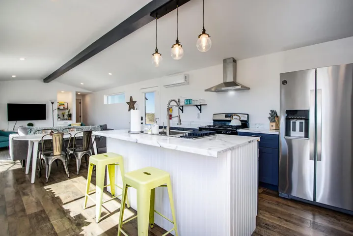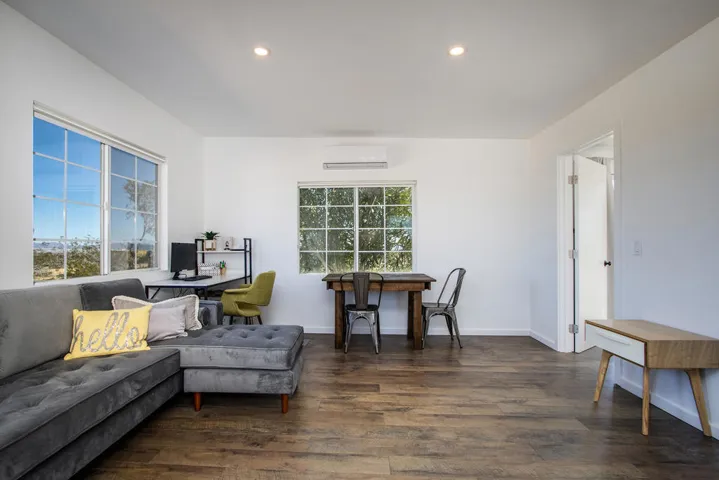 Beautufully remodeled 2 homes on 5 acres in trendy Landers, California! Property includes a 2b 2ba manufactured home plus an approximately 600 sq ft 1b 1ba cabin. 5 large acres with privacy and views for miles with large mature trees. Live in one and rent out the other. Enjoy starry nights and peaceful country living. On the Joshua Tree side of Landers, this is very close to Joshua Tree and shorter drive time to the Village and the Park than some north Joshua Tree homes. Close to Johnson Valley off road park for off road adventures. This area offers great opportunities for having a getaway ranch, vacation rental and or private residence. Joshua Tree National Monument is about 17 miles away where annually about 3 million tourists visit the park. Views of Goat Mtn, Mt. Hidalgo, and vistas of amazing sunsets that illuminate the Bullion Mtns to the east. Close to many patches of government land to hike and ride horses. All amenities are a short drive to Yucca Valley. 60 miles to skiing and fishing in Bear Bear Lake. 46 miles to golf and nightlife in Palm Springs. 140 miles to downtown Los Angeles. Square footage is approximate. Priced to Sell! Don’t miss this one – Call Now!