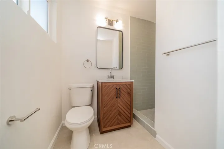 All four bedrooms are generously sized and include ceiling fans and ample closet space. The hall bathroom features sleek finishes, modern vanity and shower/tub combo, while the primary suite offers a private bath with a step-in shower and contemporary details.