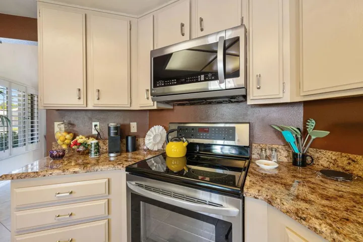 Welcome to resort-style living in the heart of the world-famous La Quinta Resort community! This beautiful 3-bedroom, 4-bathroom condo, including a detached casita, offers inviting comfort and exceptional privacy! Ideally located as an end unit next to the tennis courts, the home features a fully enclosed courtyard separating the casita from the main residence–perfect for guests or extended stays. Inside the main home, you’ll find large-format tile flooring throughout, vaulted ceilings, plantation shutters, and an abundance of natural light through ample windows. The kitchen boasts granite countertops, stainless steel appliances, and a welcoming open layout. Enjoy serene southwest-facing mountain views from your spacious rear patio, ideal for morning coffee or sunset relaxation. Experience the best of desert resort living just steps from tennis, golf, dining, several community pools and spas spread throughout the community and world-class amenities within the prestigious La Quinta Resort development! Offered partially furnished.