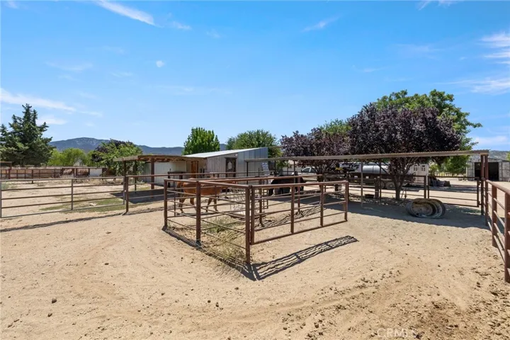 Enjoy 5 acres on your private ranch retreat, this 2B/2B 1,496 sqft home is the perfect match for horse enthusiasts and serious ranchers. The property is fully equipped with everything you need for livestock & equestrian living, including a cattle chute with run-up, multiple stalls with turnouts, a dedicated riding arena, and a spacious 60-ft round pen. Shade structures keep your animals comfortable year-round, while a covered hay barn with tack rm, trailer parking, and a large workshop—complete with electricity, bathroom, and oversized vehicle door—make storage, repairs, and projects simple and convenient. Additional property highlights include a drip irrigation plus dog kennels with nearby water access. Inside, rustic charm meets modern functionality. The kitchen showcases a butcher block island, quartz-look laminate counters & warm wood cabinetry. The living rm offers inviting wood accents, a pellet stove with thermostat, and durable laminate flooring—perfect for everyday ranch life.