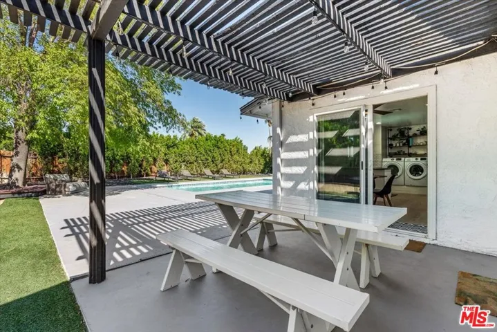 Experience a desert oasis in this newly remodeled 3-bedroom, two-bath private home with owned solar has magnificent views of the San Jacinto Mountains. This home has a huge private backyard with a pool and multiple lounge areas designed to entertain friends and family. The updated kitchen features stainless steel appliances, stone countertops, tile backsplash, and easy access to the large yard. The bathrooms and floors have recently been updated. Additional amenities include owned solar with battery back up, in-home washer and dryer and 2 car garage. The large backyard welcomes you with open arms as you enjoy a large pool with ample space for swimming, a beautiful ficus hedge for privacy and a sitting deck under a beautiful Fresno tree that casts a cooling shade during those hot desert days. It’s the perfect place for entertainment. Conveniently located just 6 minutes away from the Palm Springs nightlife, restaurants, attractions and outdoor activities! Furniture is available to purchase outside of escrow. This home is perfect for your primary residence, second home or investment property. Schedule your showing today and experience desert living at its finest! No HOA and Fee Land you own!