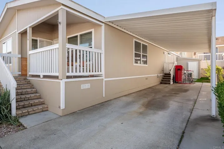 This beautiful 4 bedroom / 2 bathroom Manufactured home was built in 2011 and is located in a gated community in Oceanside. This home is placed in an all-age community. Large kitchen with a center island and stainless-steel appliances, excluding the refrigerator. The kitchen has plenty of room to share the cooking with the rest of the family. Great open floor plan with a cozy fireplace, that gives everyone plenty of room and living area. Kitchen nook closely connected to kitchen and living room. This home is equipped with Solar for energy efficiency. Spacious front deck to sit out and entertain with family and friends. Oversized driveway with covered parking and storage shed. Offering low space rent. This community is offering gated entry, pool, spa, sports court and large clubhouse. This is a great opportunity to live in Oceanside and be close to shopping, restaurants and transportation.