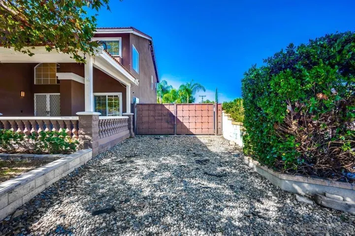 Discover this stunning, move in ready executive 5 bedroom pool home, situated on a large corner lot with a full bedroom and bathroom on the first floor. PAID OFF SOLAR, 3 car garage plus RV driveway, RV parking, and a gated side yard to store toys: RV, boats, side by sides, jet skis, etc. Inviting front covered porch with stamped concrete patio & large shade tree in front. Step inside to soaring vaulted ceilings, XL tiled flooring throughout first floor with designer inlay tile in entry way. Large, high windows let in tons of natural light throughout. Cozy fireplace with mantle in family room, large downstairs laundry room with room for storage and side by side washer & dryers. The open-concept kitchen includes a tall eat-at bar, island, granite counters, stainless steel appliances, recessed & upgraded bar lighting, undermount sink, pantry, breakfast nook, & built-in desk. Step upstairs to oversized landing which could be used as mini loft, computer desk, linen storage, etc. Double doors open up to XL primary suite which features high ceilings, tons of windows, ceiling fan & ensuite bathroom with separate tub shower, dual vanity, separate toilet closet & oversized walk in closet. Secondary bedrooms are large & guest bathroom is complete with dual sinks & separate tub / toilet area. Step outside into your backyard dream oasis- large covered patio, with built in BBQ, a rock surround pool & inviting spa. Tons of mature, lush tropical landscaping make this yard feel like the perfect getaway vacation. Home is located close to schools, parks, shopping, restaurants, freeways.
