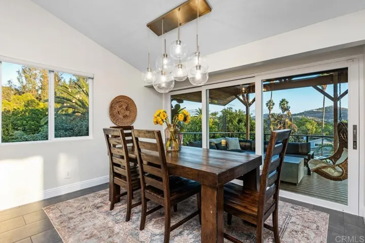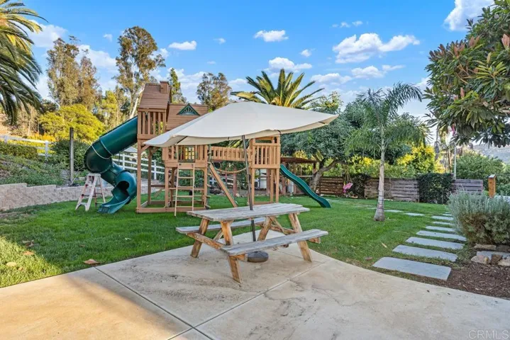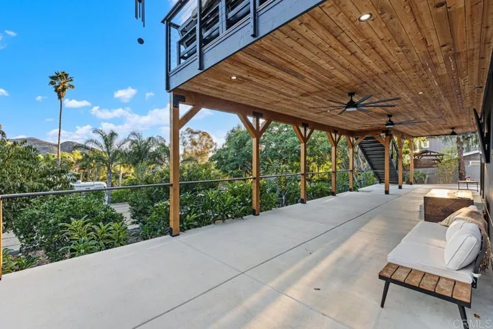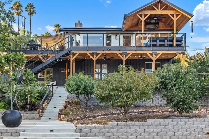 An entertainer’s dream at 682 Ora Avo Ln, this private gated estate in Vista’s walkable community offers panoramic views sitting on a large usable lot. About 2,100 sq of decking that has been completely rebuilt for the perfect entertaining setting including pitched roof overhang extension off the dining room through collapsible sliding door to create indoor/outdoor living. Custom outdoor lighting and irrigation create a year-round retreat with multiple covered sitting areas. Lush landscaping boasts fruit trees, plumerias, and palms, plus a 25×25 chicken coop and RV parking with 30-amp power and water source. Interior space has been recreated to encapsulate the natural light through expansive windows, french doors and skylights throughout. Interior updates include refaced shaker-style cabinets (2021) with new countertops, backsplash, and tile (2025). Additional upgrades include new roof (2024), updated electrical 400 amp panel, paid for solar (2023) and brand new water heater (2025). Spacious pad for potential ADU. Main entry is second floor with master bedroom and living space, downstairs has the additional 2 bedrooms and laundry room. 186 sq ft room off the garage is used as a guest bedroom. Quick access to Downtown Vista, and both 15 and 78 freeway.