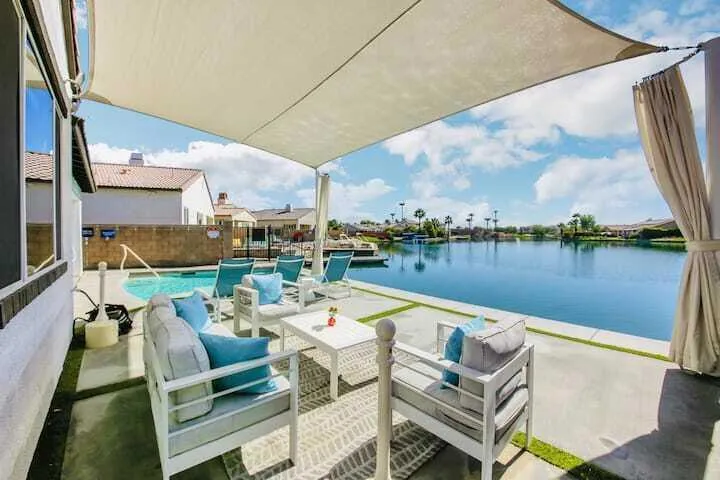 Welcome to this beautifully designed 3-bedroom, 2-bath lakefront home in the highly sought-after gated community of Terra Lago. Spanning approximately 1,720 sq. ft., this turnkey property is furnished per inventory list and ready to generate immediate short-term rental income or serve as your personal desert getaway.Enjoy seamless indoor-outdoor living with an open-concept layout that leads to your private pool and spa, all set against the backdrop of stunning lake and mountain views. The home is thoughtfully designed for both comfort and entertainment, featuring designer finishes, spacious living areas, and a chef’s kitchen with granite countertops and stainless-steel appliances.Step outside to your own waterfront paradise–complete with private dock access, firepit lounge, and outdoor dining area ideal for gatherings under the desert sky.Centrally located just minutes from Coachella, Stagecoach, Indian Wells Tennis Garden, and El Paseo’s shopping and dining, this property offers exceptional income potential and year-round demand from vacationers and festivalgoers alike. Whether you’re expanding your short-term rental portfolio or seeking a luxury escape with passive income, this is your opportunity to own a proven performer in one of the desert’s most desirable communities.