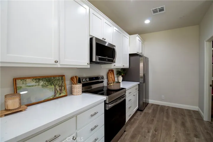 Built in 2022, this 4-bedroom home offers modern efficiency, clean design, and turnkey comfort in one of Ridgecrest’s most desirable neighborhoods. A bright, open floor plan welcomes you with 9 ft. ceilings, an oversized great room, luxury vinyl plank flooring throughout (no carpet), and a kitchen featuring quartz countertops, stainless steel appliances, and a walk-in pantry. The primary suite includes a large walk-in closet, dual-sink vanity, and a custom tiled shower with dual shower heads and a private water closet. This all-electric home includes a fully paid 22-panel / 8kW Enphase solar system with a 30-year warranty, plus a California 2-5-10 home warranty. Smart-home upgrades include ADT security, Nest doorbell, MyQ garage controls, a Tesla charger, and structured wiring in all bedrooms and living areas. The pool-sized backyard offers room to personalize, and the property includes RV parking, as well as washer, dryer, and refrigerator, making this a standout newer-construction opportunity.