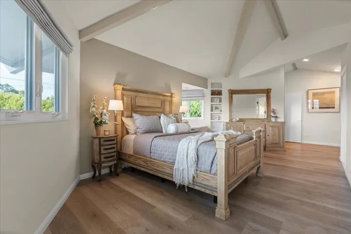 Perched on a spacious corner lot steps from beach access-this stunning ocean-view retreat embodies the essence of coastal elegance.Located in a highly sought after Rio Del Mar neighborhood with breathtaking ocean vistas from both levels bathed in natural light.Open-concept living space showcases vaulted ceilings w/ exposed beams,travertine floors & stone fireplace connecting great room to well-appointed kitchen-for relaxed living & entertaining,dual floor laundry,beautifully renovated bathrooms. All designed with a thoughtful reverse floorplan.Primary suite serves as a private sanctuary w sitting area,built-in desk+oversized walk-in closet w/ laundry.Spa-inspired ensuite bath exudes refined luxury w/ freestanding soaking tub,rain shower+dual vanity-crafted with attention to detail+timeless style. Downstairs ocean-view family room w second fireplace & abundant natural light provides a perfect space for gatherings.Seamless indoor-outdoor living unfolds w ocean-view balcony,private elevator+multiple outdoor areas inc.gated courtyard entry,backyard w/ mature fruit trees,outdoor shower+expansive front yard.Recently refreshed w/new ext. paint & landscaping,this move-in-ready home offers a rare opportunity to experience the best of coastal living in one of Aptos most desirable enclaves.