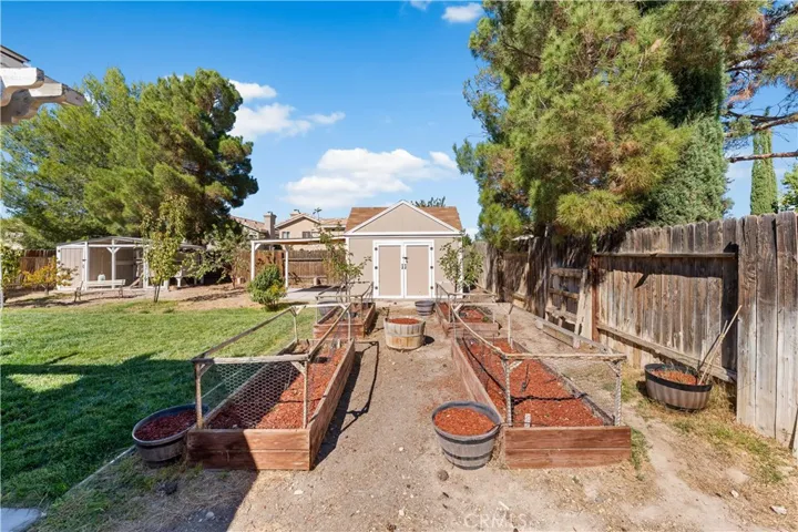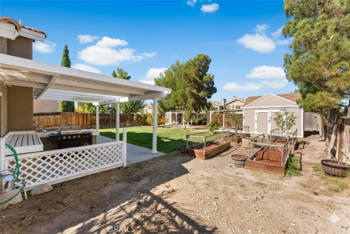 Peaceful Desert Oasis on a Large Lot. Welcome home to this inviting 3-bedroom, 2.5-bath desert retreat set on a beautifully landscaped lot filled with fruit trees and garden spaces. Bright and comfortable, the home features new double-pane windows and a new furnace for year-round efficiency. The spacious living areas flow easily into a modern kitchen and dining space, perfect for family gatherings or entertaining friends. A versatile 120 sq. ft. powered workshop with loft and a separate garden shed offer plenty of room for hobbies or storage. Enjoy outdoor living at its best with an outdoor kitchen, patio, and cozy fire pit — ideal for evenings under the desert sky. Nestled in a safe, friendly neighborhood, and conveniently located near schools and AV Medical Center, this home offers a unique balance of space, style, and functionality — an ideal desert retreat within easy reach of city amenities.