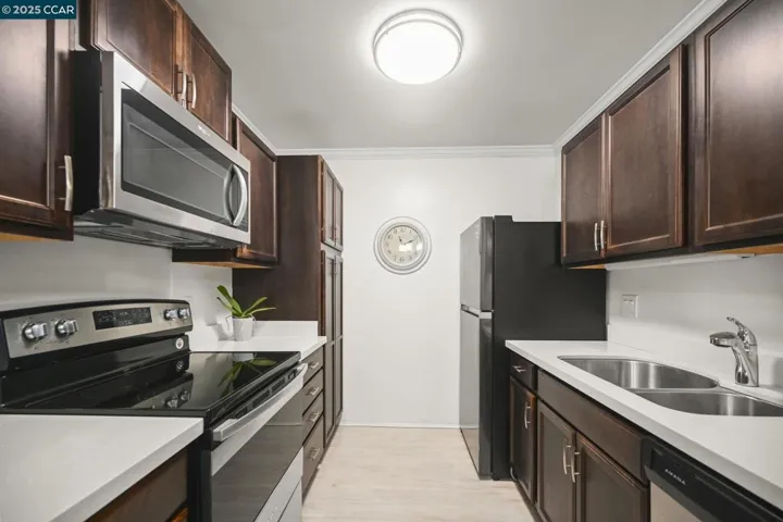No rental restrictions! Option to include furniture! Set on the highly desirable first floor of the sought-after Diablo Hills community, this stylishly remodeled 1-bedroom, 1-bath condo offers approx. 665 sq ft of modern living—welcome to resort-style comfort in the heart of Walnut Creek. The sleek kitchen boasts quartz counters, stainless steel appliances, and an open design that flows seamlessly into the living area with new high-end frosted maple laminate flooring. The updated bathroom is complete with a granite vanity, tiled floors, and a tile-surround shower over tub. Step outside to your private patio deck for a quiet retreat. Additional highlights include no current rental restrictions (buyer to verify), assigned parking (#164), indoor storage (#168), and convenient laundry access. Community amenities abound with a pool, BBQ area, clubhouse, gym, sauna, and more. Perfectly located just steps from Diablo Hills Golf Course, Heather Farms Park, John Muir Hospital, and Ygnacio Valley Shopping Center—this home blends comfort, style, and convenience. Don’t miss your chance to own this move-in-ready gem in one of Walnut Creek’s best locations!