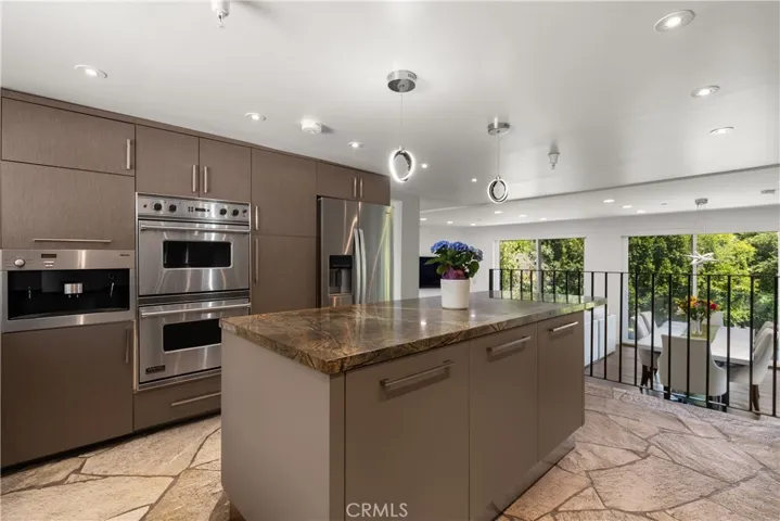 Nature lovers will feel at home in this striking modern retreat where walls of glass frame serene treetop views, creating seamless indoor-outdoor living across nearly 3,100 sq ft of contemporary design. The location on Hollywood’s Prime Celebrity Row—a destination known for privacy, prestige, and proximity to the Sunset Strip—is a great plus. Floor-to-ceiling glass walls blur the line between indoors and outdoors. Nearly 3,100 sq ft of airy, light-filled living space flows seamlessly to expansive decks—perfect for savoring sunset skies or hosting starlit gatherings. The primary suite feels like a retreat in the clouds, complete with a spa-inspired bath, custom walk-in closet, and a private balcony suspended among the trees. Outside, a flat backyard with a koi pond and turf lawn creates a peaceful, low-maintenance oasis, with room to add a pool or spa if desired. Direct access to Runyon Canyon trails means hiking adventures start at your doorstep. Additional features include wide-plank oak floors, smart-home technology, new HVAC, elastomeric roof coating, and an 8-camera security system. With parking for five cars, this home offers the ultimate blend of natural beauty, modern design, and Hollywood Hills prestige.