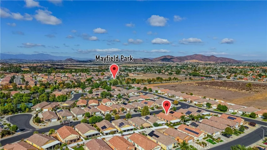 Gorgeous 2-bedroom, 2-bath home with a versatile Den that can easily convert into a 3rd bedroom. Offering 1,813 square feet of comfortable living space. Built in 2016, located in the desirable gated Orchid/Primrose 55+ Senior community at 30282 Silicate Dr., Menifee, CA 92584. This stunning home combines modern upgrades featuring; upgraded plank tile flooring in common areas, and cozy carpeting in the bedrooms, complemented by a Therma-Tru raised panel front door with decorative glass insert, and stylish two-tone gray flat finish paint. The Double door walled-in Den provides privacy for a home office or guest room. Other features are; indoor Laundry with utility sink, white Thermofoil cabinetry adding extra storage, and a clean look, plus newer Washer & Dryer included! Ceiling fans are installed throughout, and the home is pre-wired for flat-screen TVs. Wood shutters and dual-pane windows enhance comfort and energy efficiency. The great room, located just off the kitchen, features a beautiful indoor fireplace—creating a warm and inviting space perfect for relaxing or entertaining. The kitchen is a true centerpiece, featuring stainless steel appliances, white thermofoil cabinets, a custom backsplash, pendant lighting, a center island to include the range with gas cook top and vented hood, pull-outdrawers for pots and pans, and a frosted glass pantry door. The primary suite includes mirrored closet doors, recessed lighting with dimmer controls, framed mirrors, a silver aluminum stand up shower enclosure, separate soaking tub, and ADA-height toilets with privacy door. The exterior has been beautifully upgraded with a landscaped front yard featuring a custom walkway, wall planter, curb, decorative rock, shrubs, tree, and synthetic turf. The backyard offers low-maintenance enjoyment with synthetic turf, gravel, a drip irrigation system, aluminum rain gutters, and an alumawood patio cover with ceiling fans—perfect for relaxing or hosting gatherings. The two-car garage includes coach lights and fluorescent lighting, tankless water heater, side door to rear yard. This beautiful lot spans 5,227square feet with amazing curb appeal in one of Menifee’s most sought-after senior communities.