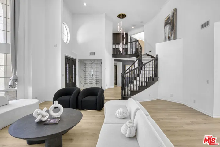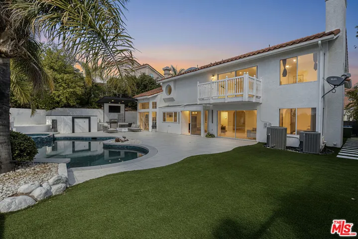 Welcome to this fully remodeled designer home in the prestigious guard-gated Porter Ranch Estates. Every inch of this rare residence has been beautifully reimagined, showcasing new flooring, three modern fireplaces, a fully upgraded kitchen and bathrooms, and a completely redesigned pool with an outdoor kitchen. Step through the grand double-door entry into an impressive foyer with soaring ceilings. The formal living and dining rooms exude elegance, featuring a statement fireplace and high-end finishes throughout. The spacious family room offers another fireplace, custom built-ins, and seamless flow into the gourmet kitchen complete with new stone countertops, Sub-Zero refrigerator, wine cooler, and a stunning view of the backyard.The main level also includes a bedroom and full bath, a laundry room, and direct access to the finished garage with built-in storage.Upstairs, you’ll find a large bonus room with its own fireplace ideal for a media room or lounge plus a luxurious primary suite offering tranquil views, a spa-inspired ensuite with a jacuzzi tub, and an oversized custom closet. Two additional bedrooms and a full bath complete the second level.The backyard is an entertainer’s dream, showcasing a resurfaced pool and spa, built-in outdoor kitchen, lush landscaping, and mature palm trees creating a true resort-style ambiance.Additional upgrades include recessed lighting, a tankless water heater, central vacuum system, updated Lennox HVAC, and custom window treatments.Located within the exclusive Porter Ranch Estates community, residents enjoy 24-hour guard security and resort-style amenities including pools, spas, tennis courts, volleyball and basketball courts, and a dog park all just minutes from top-rated schools, shopping, dining, and freeway access.