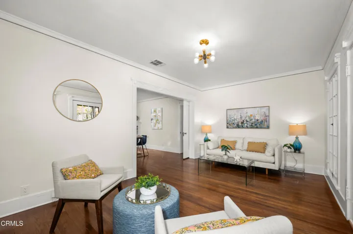 Tucked away on a tranquil street under a canopy of mature trees, this charming 1922 craftsman bungalow has been updated with good taste and a gentle touch. The traditional front porch flows into the airy living room. The living room opens to a light-filled dining room and kitchen. Built-in cabinetry! The kitchen is spacious with original cabinetry, many windows, and leafy views. Luminous wood floors throughout the living areas exude quality and ground the space. The original windows are intact! Both bedrooms are airy and offer oversize windows on two sides. The bathroom has been stylishly updated. A laundry area off of the kitchen adds to the feeling of well-thought-out convenience. French doors from the dining room open to a shaded brick terrace. The fenced backyard with mature landscaping provides peace and quiet, and an environment where kids and pets can play safely. The HVAC system is recent. The property offers a flat lot with incredible expansion or ADU potential. This fantastic location is just a short stroll to the Allen Gold Line Station, Colorado Blvd., and all the hip spots that Pasadena is famous for! This is a gorgeous property in a great location. Take a tour while it’s still available!