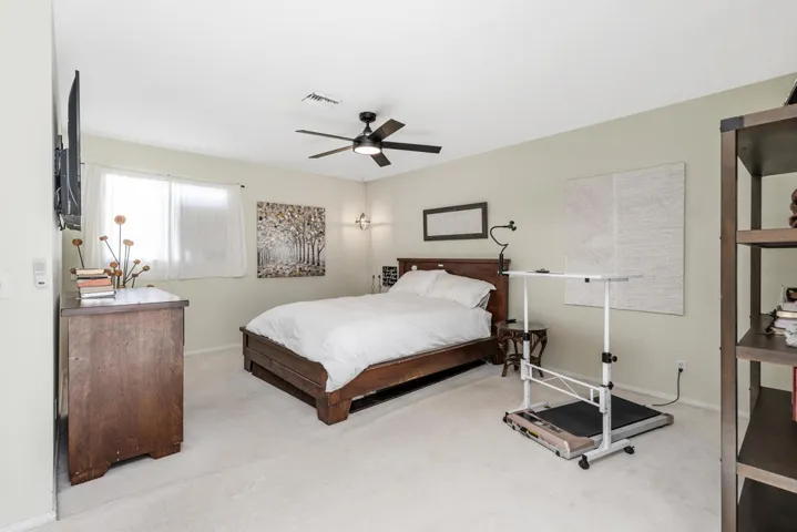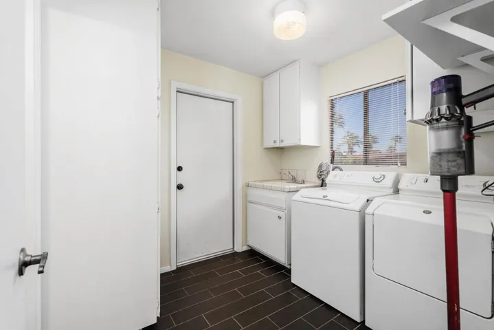 Experience the best of desert living in this inviting South Palm Desert retreat, where El Paseo’s vibrant shops and restaurants are just a leisurely walk away. This immaculately-maintained 3-bedroom, 2.5-bath home with a spacious den offers the perfect balance of comfort and style. Step inside to discover 2,038 square feet of light-filled living space, where recessed lighting, tile floors, and an open, airy layout create a warm and inviting atmosphere. The spacious kitchen is a chef’s delight, featuring stainless steel appliances, a gas range, and a breakfast bar–ideal for casual mornings or entertaining friends. An individual laundry room with a sink adds everyday convenience. The primary suite is your private escape, complete with a walk-in closet, dual vanities, and a tiled shower. Step outside to your own private desert oasis–a saltwater pebble tech pool and spa surrounded by a large covered patio and mountain views. Whether you’re hosting a sunset dinner or enjoying a quiet morning swim, this backyard is made for relaxation and connection. With a newer roof (2022), fresh paint (2022), newer AC (2021), and updated pool equipment (2023), this home is move-in ready and designed for years of effortless enjoyment. The large driveway and two-car garage provide ample space for guests and storage. Don’t miss this rare opportunity to own a beautifully maintained home in one of Palm Desert’s most desirable neighborhoods–where modern living meets timeless desert beauty.