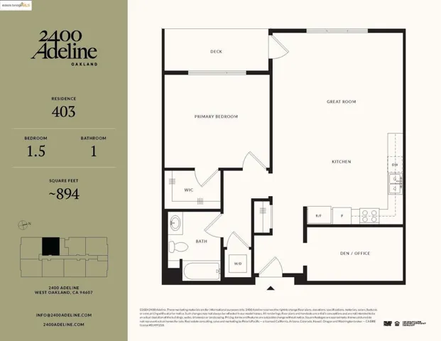 2400 Adeline #403 is a brand new, 1 Bedroom + Den, 1 Bath condominium. Top floor, 10ft ceilings, central heat and air conditioning, stainless kitchen appliances solid surface countertops. Enjoy views from averywindow and from your private balcony. 2400 Adeline is 75% Sold Out so don’t miss this one.