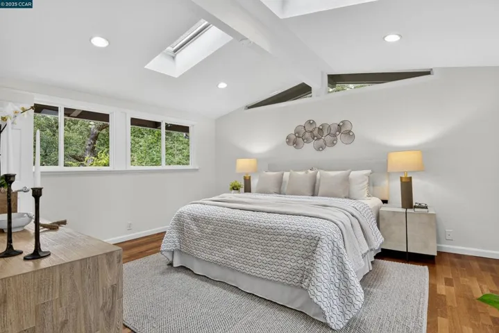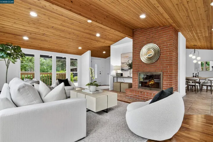 Welcome to 853 Revere Road, a spacious and light-filled retreat ideally set at the end of a quiet cul-de-sac in Lafayette’s sought-after Hidden Valley neighborhood. Just minutes from town, this 5-bedroom, 3-bathroom home offers 2,868 sq ft of mid-century style with soaring vaulted ceilings, walls of windows, and great indoor-outdoor flow. The updated kitchen features a center island, stainless steel appliances, and a smart layout that flows easily into the dining room—complete with direct access to the deck for effortless entertaining. The upper level includes three bedrooms and two bathrooms, including the primary suite. Downstairs, you’ll find two additional bedrooms, a full bath, and a spacious rumpus room that opens to the backyard. Set on a large, private lot, the yard is brimming with possibility—fruit trees, raised vegetable beds, and a standalone sauna offer a unique mix of utility and tranquility. Just minutes to downtown Lafayette and top-rated schools. This is the one. Open Sat 10/25 & Sun 10/26 1-4