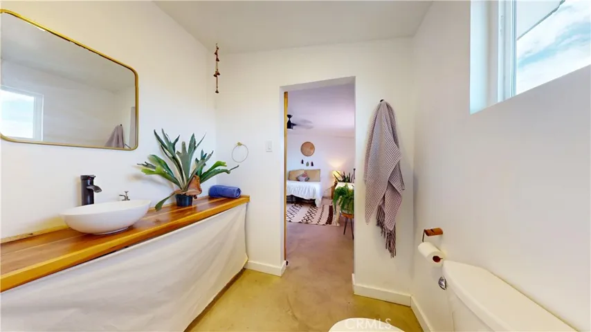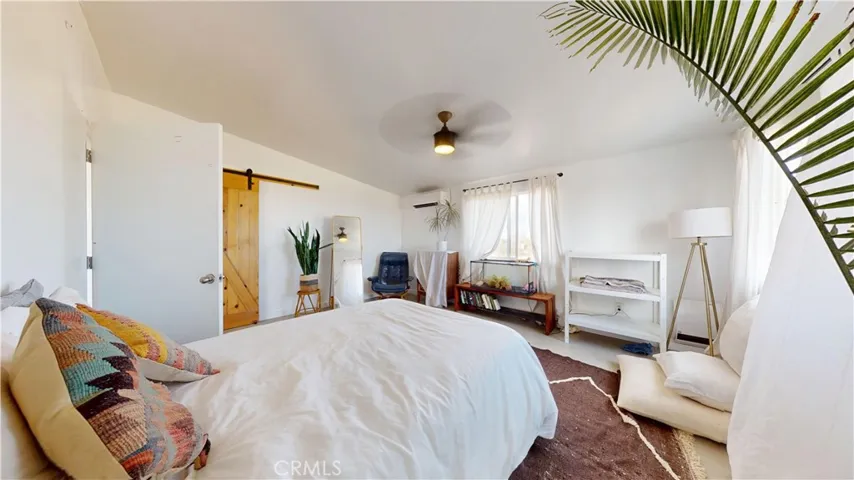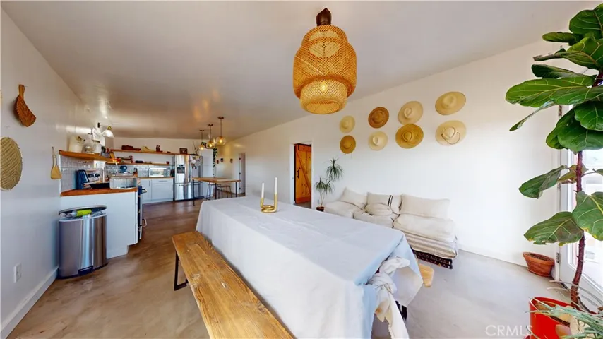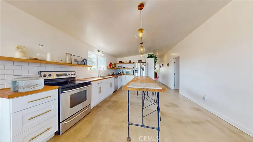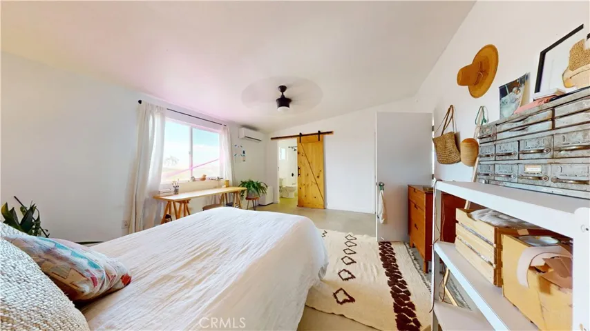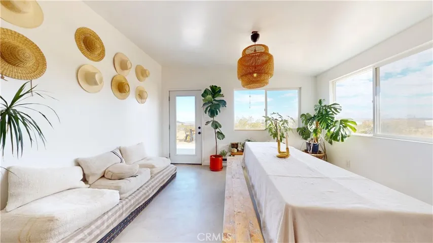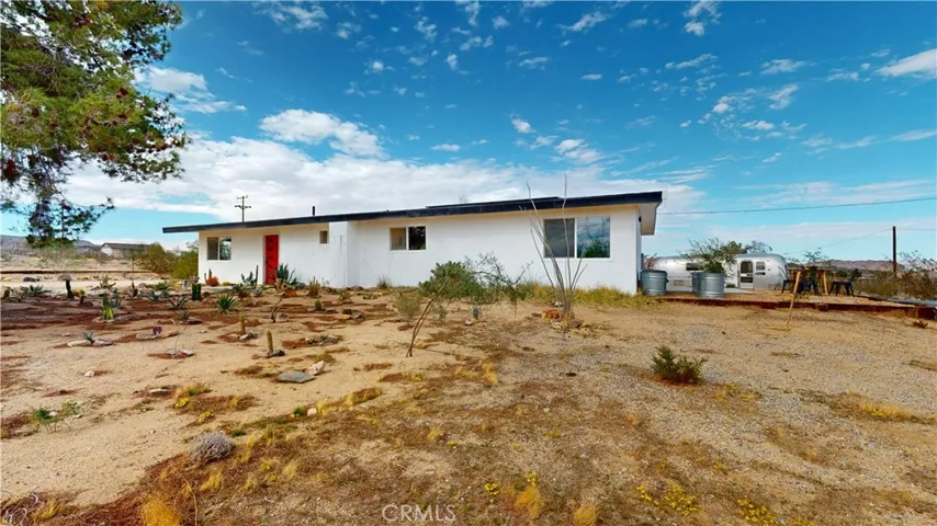 Landers at its finest. This beautiful home is the perfect desert getaway. 2 Bedrooms, 2 Bathrooms, and a roomy floorpan on 2.5 Acres. Step into the home on the new tile landing and notice the tons of natural light that fills the home. Outside the living room sliding glass door is a covered patio that is the perfect place to enjoy. Continuing through the home to the expansive kitchen you will see the concrete floors and wood accents of interior sliding doors, and wood countertops give the home a perfect modern desert feel. The kitchen with its large butcher block counter tops gives plenty of space for food preparation with natural light coming in through the window leading out to the expansive lot with beautiful desert views. The home is powered by an owned solar system that produces enough power for the entire home. Ductless air conditioning and heat provide comfort throughout the year. Spacious bedrooms allow for comfortable accommodations with the primary having a full on suite bathroom. Enjoy the outdoors with the beautiful cactus garden or cool off in the cowboy tub outside the dining area. Property has been rented as a short term rental in the past with significant earnings, can be purchased fully furnished with all appliances turn key. Make this home yours and call to set up a showing.