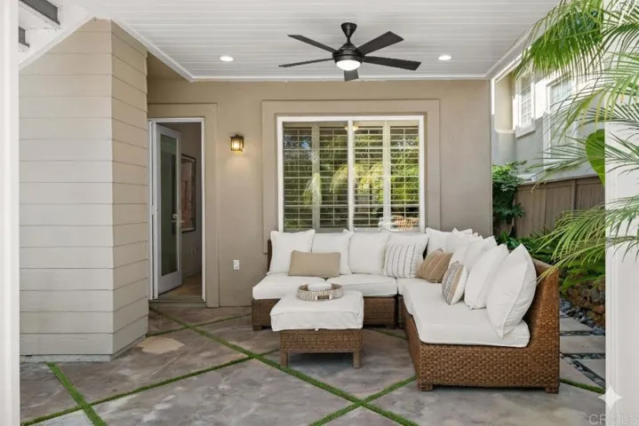 Welcome to 7066 Leeward Street—coastal living at its finest! Located in the highly desirable Hanover Beach Colony, just across from the beach, this home offers 3 bedrooms, 2.5 baths, and 1,926 sq ft of beautifully designed living space. The vaulted ceilings enhance the abundant natural light and the open, airy feel. Crown Moulding and wood cased windows with shutters give this home a custom feel. Two secondary bedrooms downstairs with a Jack-and-Jill bathroom, convenient indoor laundry, and a finished two-car garage with built-in cabinetry, painted walls, and newly finished epoxy floors. The kitchen opens to the living and dining areas with granite countertops, stainless steel appliances, and plenty of storage—ideal for entertaining or casual gatherings. Off the kitchen and family room step right out to the new Trex patio deck to enjoy morning coffee or dinner alfresco, with a covered area below for additional outdoor living space. The primary suite offers privacy and comfort with a large walk-in closet and a fully remodeled ensuite bathroom with a soaking tub, beautiful tiled stone walk-in shower, and a newer vanity with upgraded fixtures. Additional highlights include a large storage room (not included in the square footage). The peaceful backyard is a true retreat with a covered patio, waterfall feature, lush landscaping, and outdoor lighting—creating a serene and private coastal escape. Residents of Hanover Beach Colony enjoy community amenities including a pool and spa, beautifully maintained grounds, and a family-friendly neighborhood. Conveniently located near shopping, restaurants, and freeway access, and excellent award-winning Carlsbad schools. Don’t miss this opportunity to own a meticulously kept home in a prime coastal location—just steps from the sand!