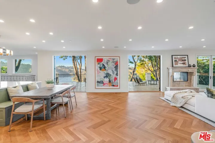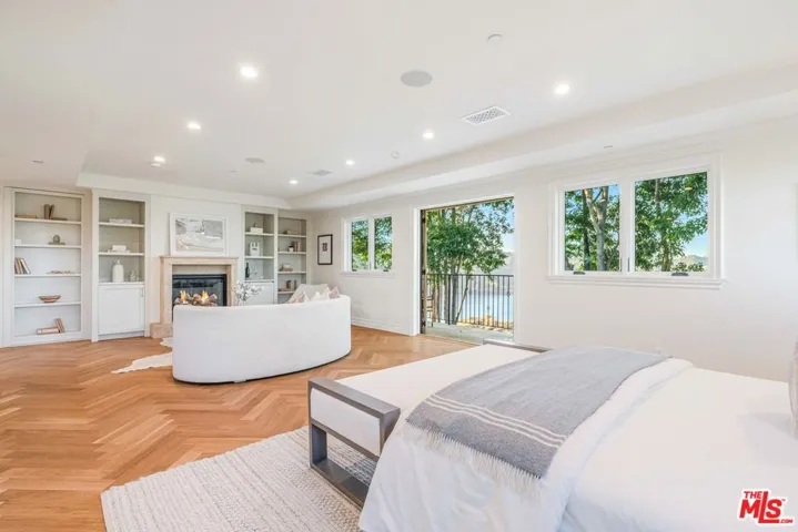 Contemporary Mediterranean Masterpiece located behind gates on a fully private hillside setting in the beautiful hills of Bel Air. 1 of only 5 properties on Bel Air Road to feature unobstructed panoramic views of the Stone Canyon Reservoir and surrounding hills. This turnkey residence has been beautifully reimagined and completely rebuilt with exceptional indoor/outdoor design to showcase the feeling of a European lakeside villa. Situated on a near 1/2 acre lot, this home features 6 bedrooms, 9 baths, a bright open floor plan and warm minimalist aesthetic. A grand two-story entry with double height glass front doors leads to main living spaces with solid White Oak Herringbone wood floors and stunning water views. There’s a custom designed gourmet kitchen with top of the line Thermador appliances, centerpiece La Cornue Range, oversized center island, breakfast area with built-in bench and separate Butler’s pantry. The living room features a beautiful stone fireplace, light-up marble wet bar and adjoining formal dining room with oversized wine cellar. The main living rooms all open to the spectacular backyard featuring a beautiful pool, spa, outdoor kitchen, BBQ, multiple dining and seating areas, meticulous landscaping with grass lawn, mature redwood trees, landscape lighting. The setting is peaceful, fully private and perfect for entertaining. The primary suite includes a private patio with captivating reservoir views, dry bar with lounge space, two walk-in closets and dual spa-like bathrooms with heated floors and oversized steam showers. A lower level features a wellness area with gym, spa bathroom with heated floors, steam shower, cold plunge and outdoor barrel sauna facing the water. Other features include custom interior lighting design and fixtures, camera security system, smart front gate access with facial recognition, speaker system throughout, home elevator, laundry room with double LG washer/dryer towers. Set privately behind gates that open to a spectacular motor court with long 100 ft gravel driveway, private garage and parking for over 10 cars. This gated estate compound is turnkey and truly one of a kind.