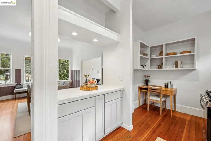 Historic Vintage Charm with a Creative Spirit! Tucked behind Mosswood Park and just two blocks from Piedmont Avenue’s beloved cafés, shops, and eateries, this 1912 Craftsman radiates warmth and authenticity. Original hardwood floors, wainscoting, and millwork showcase timeless craftsmanship, while a pass-through from dining to kitchen keeps the flow easy and social. With 2 bedrooms and 2 baths, including a primary suite with an en-suite bath, every space blends comfort and character. The kitchen’s open shelving adds an airy, collected feel, and decks off both bedrooms open to a private backyard with raised beds ready for your harvesting dreams and a mature lime tree that thrives year-round. A two-car garage and large basement workshop with built-in tables invite creativity, storage, or studio space.* Close to Temescal, Kaiser Permanente, BART, and freeways 580 & 24, this home celebrates Oakland’s craftsmanship, charm, and creative heart.*Buyer to Investigate