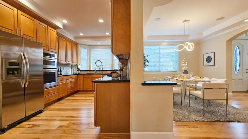 Step into this stunning 4-bedroom (all upstairs), 2.5-bath former model home where elegance meets everyday comfort. From the graceful iron staircase to the coffered ceilings and crown molding, every detail reflects thoughtful design. The open, light-filled layout invites connection, cook in your gourmet kitchen while friends gather nearby, or unwind by the cozy gas fireplace in the family room, with a central sound system amplifier, sound bar, and TV. The spacious primary suite offers a serene retreat, perfect for quiet mornings or peaceful nights. Enjoy a spacious primary ensuite bath with a luxurious soak in the bath, separate shower, and two-sink vanity! HVAC: Separate heating/cooling zones for upstairs and downstairs, 240 amp plug for car charging in the garage. PG&E plus solar panels and a backup battery in the garage. Outside, enjoy a gorgeous low-maintenance yard with old-world style pavers, blooming flowering bushes, and new trees, ideal for BBQs or evening relaxation. Located in a quiet cul-de-sac with only 11 homes. Pride of ownership shows within the community. No HOA dues, a superb Cambrian location near top schools, restaurants, shopping, and Hwy 85, this home offers the best of luxury living and community charm. Open Sunday 1-4pm.
