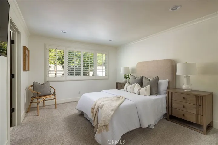 Enjoy panoramic Pacific vistas from all main living areas and the serene master suite, where rich hardwood walnut floors run throughout the home, grounding each space in warmth and refinement. Retractable awnings and electronic vanishing screens soften indirect sunsets and offer effortless transitions between indoor comfort and outdoor splendor. Designed for seamless flow, the virtually stepless floor plan invites gentle ocean breezes and natural light into every corner of the home.