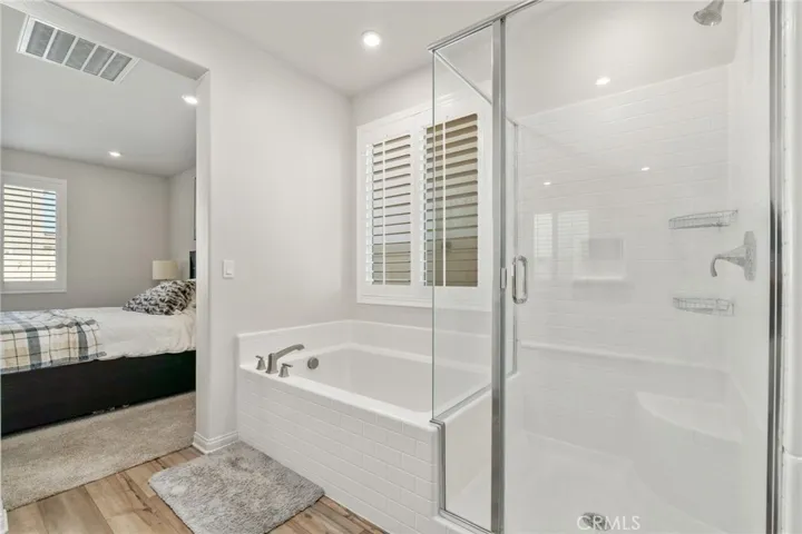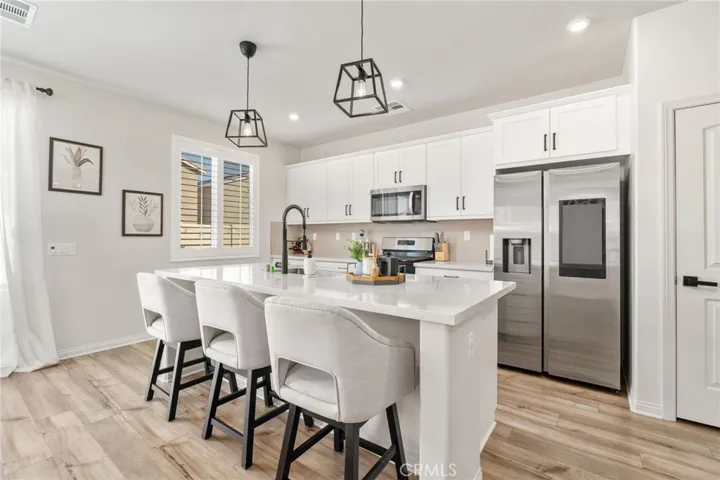 It offers an open, thoughtfully designed layout with two spacious secondary bedrooms, a large center island in the kitchen, and a convenient laundry room. The private primary suite features a generous walk-in closet and a luxurious bathroom with dual sinks, a soaking tub, and a walk-in shower. Designer finishes include all-white cabinets, quartz countertops, and durable LVP flooring.